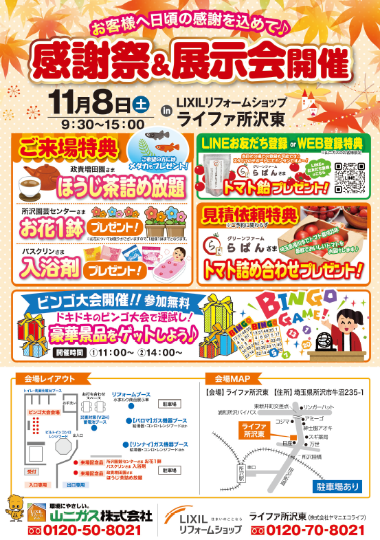 ● 山二ガス株式会社 所沢支店 TEL 04-2994-8021